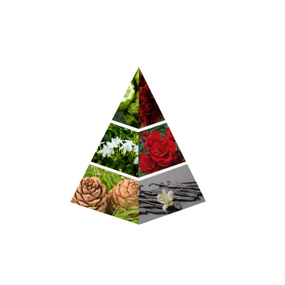 A fragrance rich with labdanum, giving it a woody and leathery scent that is powerful. The floral rose and jasmine at the heart gives the scent an effortless charm