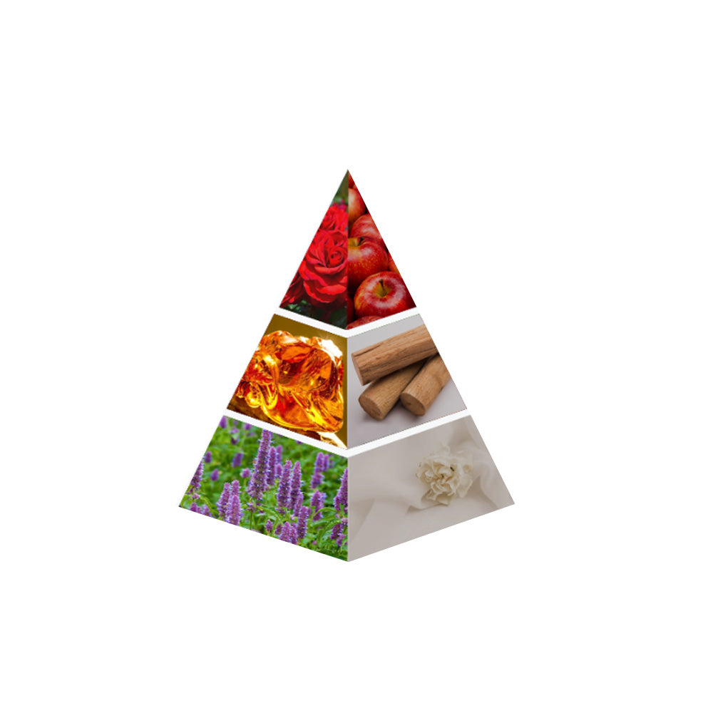 A captivating blend of romance and warmth, this fragrance opens with the delicate allure of rose and juicy red fruits. At its heart, creamy sandalwood and amber vanilla envelop the senses in a rich embrace, while earthy patchouli and soft musk leave a lingering trail of sensual elegance