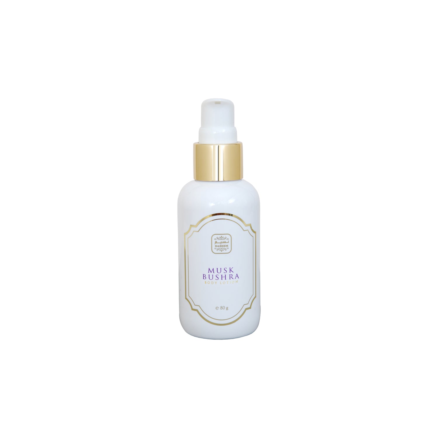 Musk Bushra 80GM Body Lotion is a delicate harmony of floral elegance and sensual warmth. This luxurious body lotion opens with a vibrant burst of orange, mandarin, jacinthes, and fresh rose petals. At its heart, jasmine and iris unfold in a soft, powdery bouquet, while a rich base of patchouli, amber, vanilla, and musk leaves a lasting impression of refined indulgent
