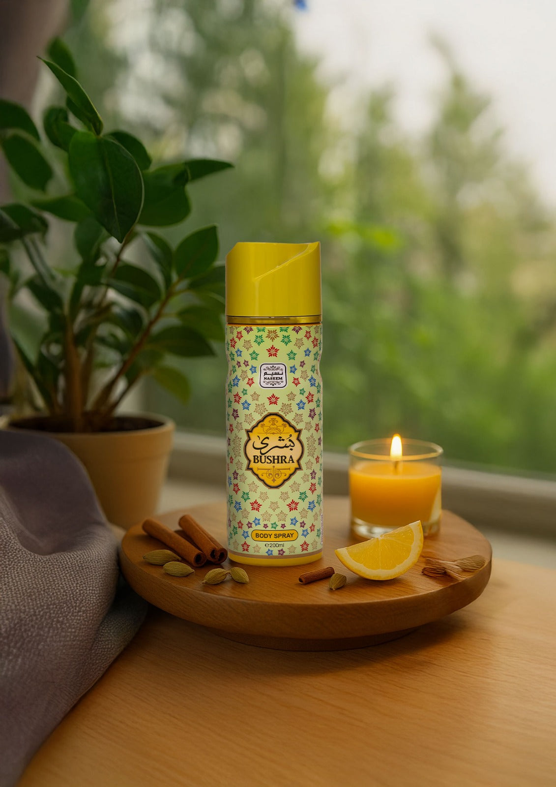 An enchanting composition with the tangy oranges and vivid lemons in BUSHRA Body Spray that brightens your day and adds some spice to your life with sandalwood at the base of this invigorating fragrance.