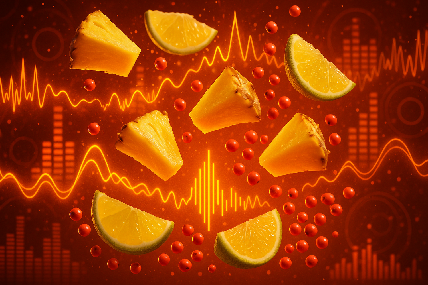 An ultimate soundbeat scent, “Turn up the volume” starts off passionately on loud and fervent notes of pineapple and bergamot. This fresh fruitiness is sharpened by the warm and cheerful pink pepper which creates a unique olfactive vibrancy.