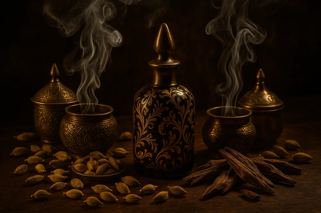 As the heart unfolds, cardamom and oud create a smoky, mysterious depth—unbreakable, unyielding.