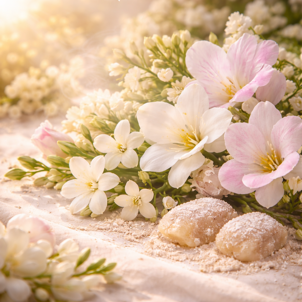 As the fragrance unfolds, a soft floral heart emerges. Jasmine brings gentle elegance, while freesia adds an airy, dewy freshness. Wrapped in a sweet accord, the middle notes feel smooth and inviting, balancing fruity brightness with a delicate, feminine warmth