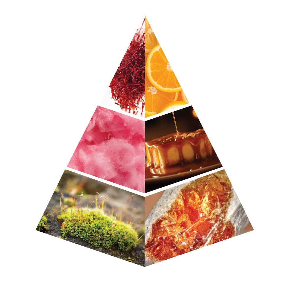 Captivating oriental gourmand fragrance that begins with the warm, spicy richness of saffron, the citrusy brightness of orange, and the delicate floral essence of jasmine. The heart reveals a sweet, indulgent blend of caramel and candy floss, evoking a comforting, sugary allure. The base is anchored in the earthy elegance of white amber and oakmoss, adding depth and a soft, woody warmth. This scent is a beautiful fusion of sweet, spicy, and earthy notes, offering a rich and luxurious experience.